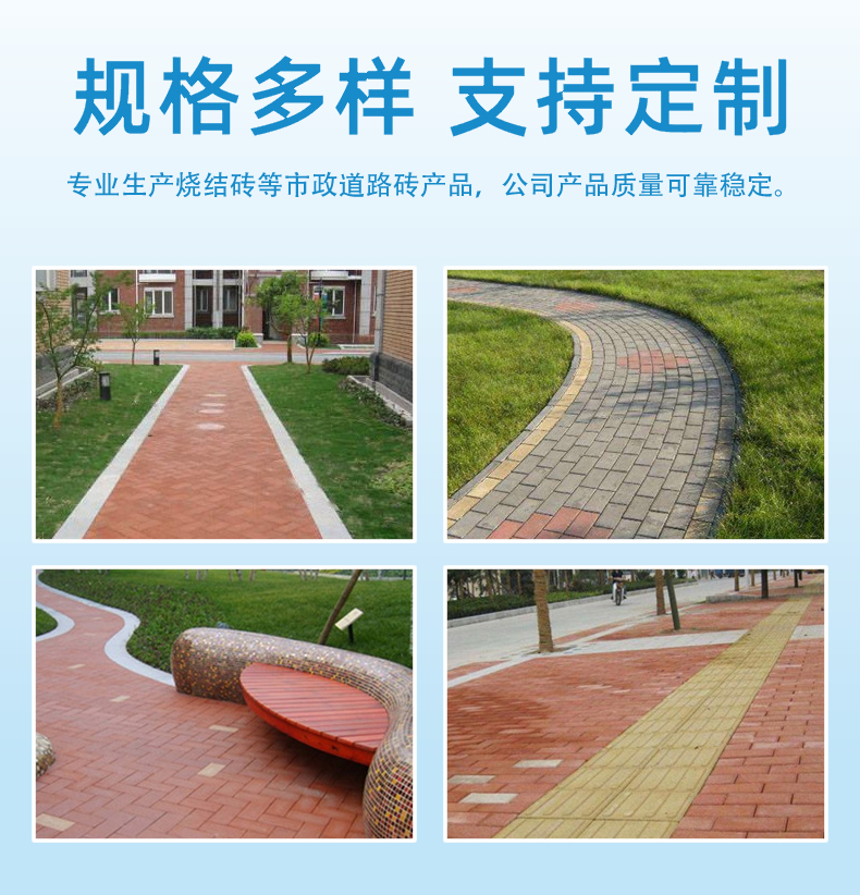 ①.廣場磚源自行業嚴格的選料標準和獨特的高溫慢燒技術,要求吸水率<5%。原料配方中的瘠性料比例占70%,可塑性原料30%左右。②.通體廣場磚仿天然花崗巖石或紫砂巖石,花紋肌理自然,質感古樸厚實,綜合物理性能優良。